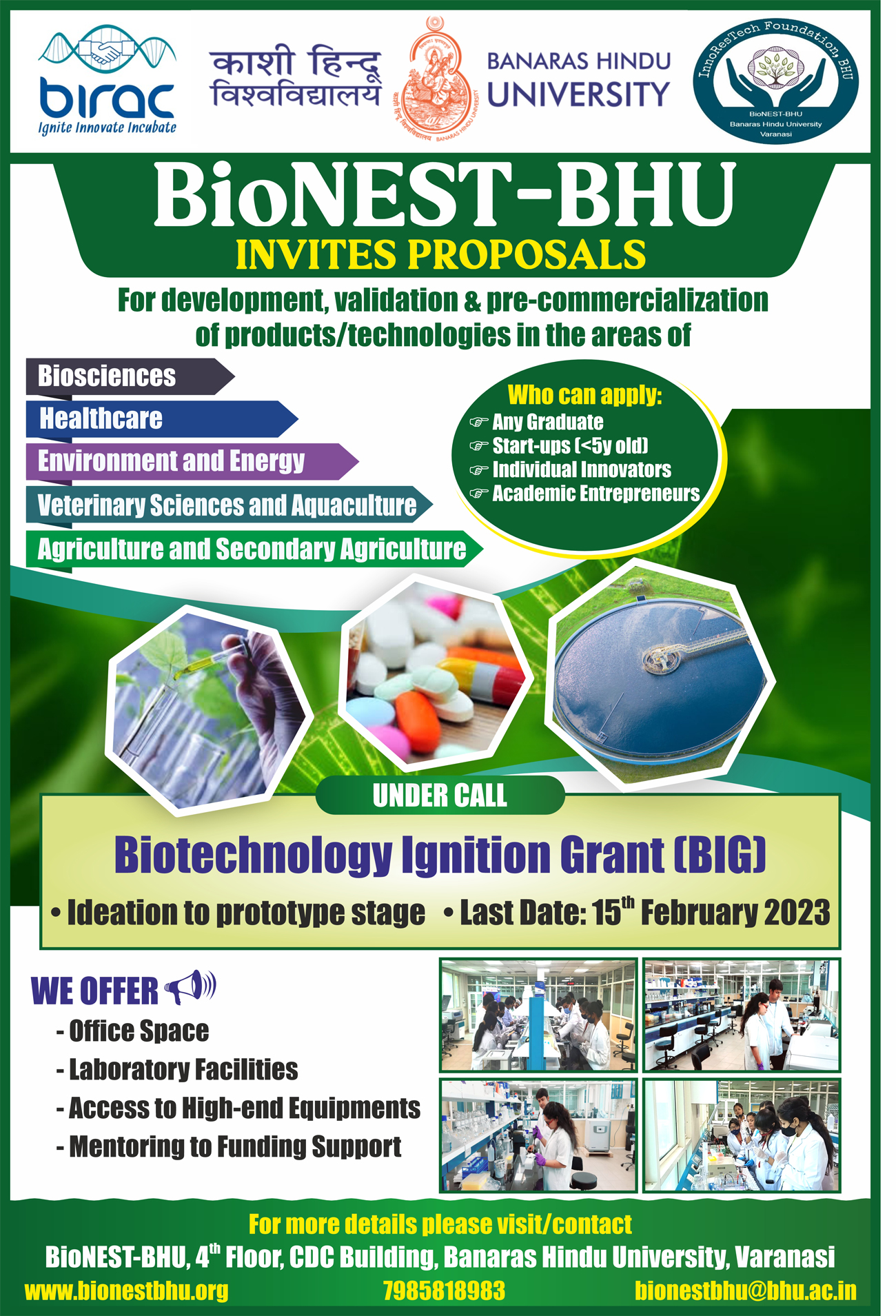 The BioNEST-BHU invites proposals for exciting programs that support product/technology. The details of the program are as below